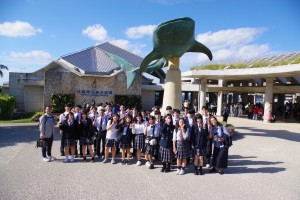 エメラルドグリーンの沖縄の海は、景色も魚も北海道のそれとは違いました。圧巻の大水槽を泳ぐジンベエザメ、見たこともない魚たち。全国の修学旅行生の多さ。見るものすべてが新鮮な体験になりました。