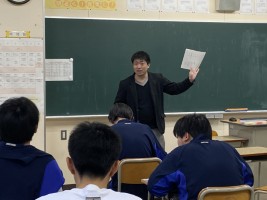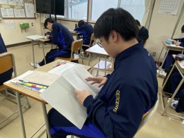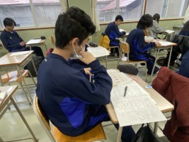試験前日なので各教科で試験勉強が行われました。5時間目の1Aは「現代の国語」です。試験対策プリントが配られ、「この問題が完ぺきにできると22点は取れる!」という説明が阿部先生からありました。プラスあと少しで赤点回避ですね。とても親切な阿部先生です。