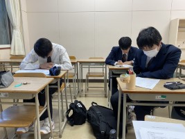 担当の相場先生は「英語を聞いたら英語のまま考える、いちいち日本語に訳さないで!」と言っていましたが難しいです…。でも、試験まで日にちがないので、今はとにかくやれることをやるしかないです。明日の講習はライティング中心に行う予定です。1点でも多く得点できるよう諦めないで取り組みましょう。全員の合格を期待していますよ。