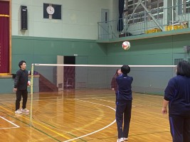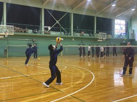 ひとりひとり順番に先生方からのパスを丁寧に返球する練習です。もしかしたら冬季体育大会の種目に選ばれる可能性があるバレーボール。去年も盛り上がっていました!ラリーが続くと楽しいですよね。ラリーを続けるためにはこの基本のパスが重要です。最終的には白熱した試合が見られるのでしょうか。次回は、試合の時間に見学に行きたいです。