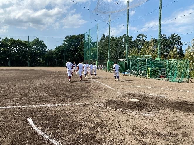 【 硬式野球部 】 グラウンドで参加者とウォーミングアップ・バッティング・ピッチングに取り組む