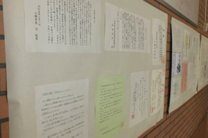 廊下には、卒業式で披露された祝辞が今も掲示されています。小樽市長をはじめ、母校の中学校、進学先の大学や専門学校、他の高校、国会議員、日本ハムファイターズからの祝辞もあります。本校の卒業を祝福してくださった皆様、ありがとうございました。