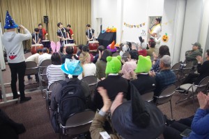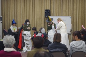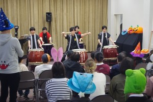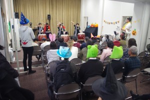本校太鼓部員6名と顧問2名は、市内の末日聖徒イエスキリスト教会に招かれハロウィンの催し物に参加しました。
