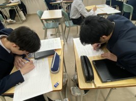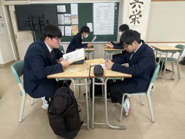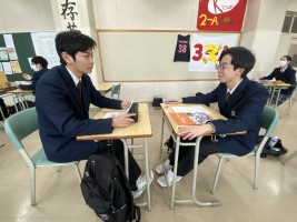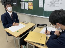 昨日から修学旅行特別時間割となっています。今日は2時間授業です。3年生は2時間続きで「進路」の授業でした。今日はペアワークで「相手に伝える力」「聞き取る力」「要点をまとめる、再度伝える」ということを活動目標にして取り組みました。