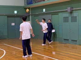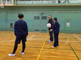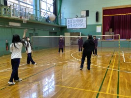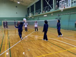 女子はローテーションの仕方、コートの確認などを大島先生から説明を受けて、ラリーが始まりました。声を掛け合って楽しそうにプレーしていましたね。ラリーが続く場面もありました。