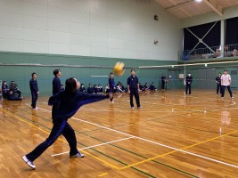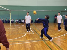 男子のバレーボールは由利先生の気合い入れからスタート。声掛けが積極的で、チームの団結が見られました。強烈なサーブがきまったり、アタックを打ったり…盛り上がりました。