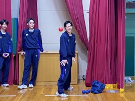 ステージ上ではボッチャの練習が行われていました。自分たちでスムーズに進めていました。みんな的に合わせてバシッと玉を止められていて驚きました。とても上手ですね。