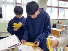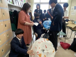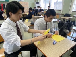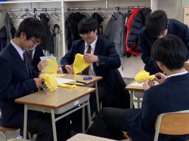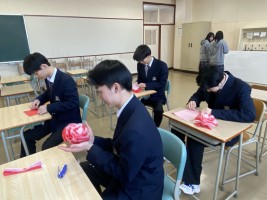 5時間目のLHRは予餞会(3年生を送る会)へむけて1,2年生が担当に分かれて作業していました。各クラスパネル制作と1年生はくす玉用のお花をひとつひとつ丁寧に作り、2年生はくす玉に入れる垂れ幕などを担当します。