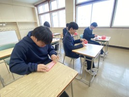 3年生も今日は登校日で最後の定期考査の答案が返却されました。納得のできる結果だったのでしょうか?3年生の次の全員登校日は2月25日(水)です。もう数日しか登校しません。それを考えると寂しくなりますね。予餞会や卒業式にむけて体調管理をして過ごしましょう。