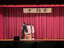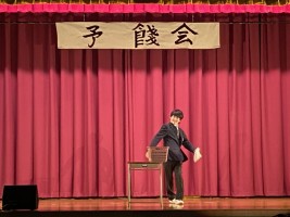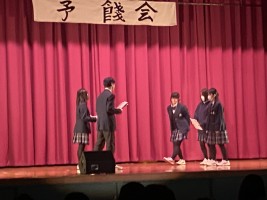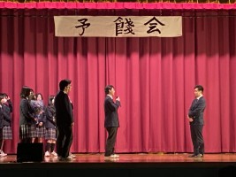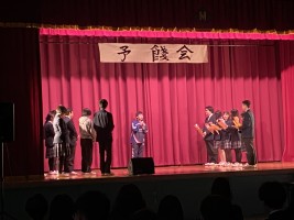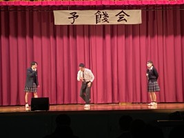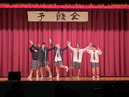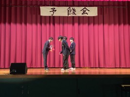3年生の各クラスから担任の先生への発表は、それぞれのクラスで贈り物などを用紙して感謝の言葉が述べられました。思い出が甦り笑いが出たところもありました。担任の先生は感慨深いものがあったのではないでしょうか。続きは卒業式で、ということで予餞会は終了しました。準備から運営まで生徒会のみなさん、お疲れさまでした。また、音響担当の放送局、照明担当の演劇部のみなさんもありがとうございました。