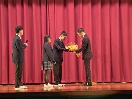 その後は部活動の発表です。バスケットボール部、バトミントン部、野球部、料理部、生徒会の順番でメッセージなどの発表がありました。3年生も登壇して後輩からのメッセージを聞いて、きっと嬉しかったでしょうね。3年間の思い出が頭の中で溢れ出したのではないでしょうか。
