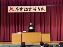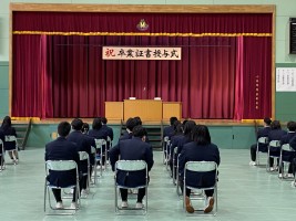 その後、単年度皆勤賞と同窓会賞の授与を行いました。毎日の頑張りが認められましたね。卒業後は同窓会員です。いつか集まって近況報告などできると嬉しいです。1日の卒業式まで心身の具合を整えて過ごしましょう。卒業式、楽しみですね!